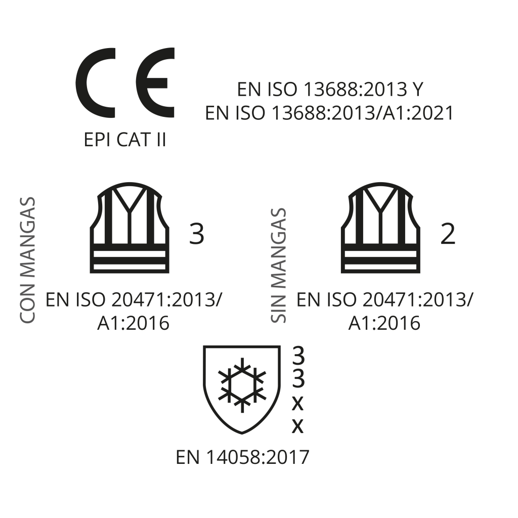 · Una banda reflectante horizontal en cuerpo y dos verticales en hombros y mangas