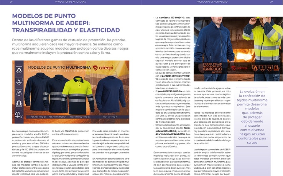 En ADEEPI han desarrollado una serie de modelos de punto con tejido multinorma. El punto permite esa mayor ligereza, transpirabilidad y elasticidad que los tejidos de calada no pueden ofrecer. Los modelos que destacamos son los siguientes: