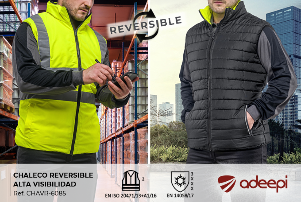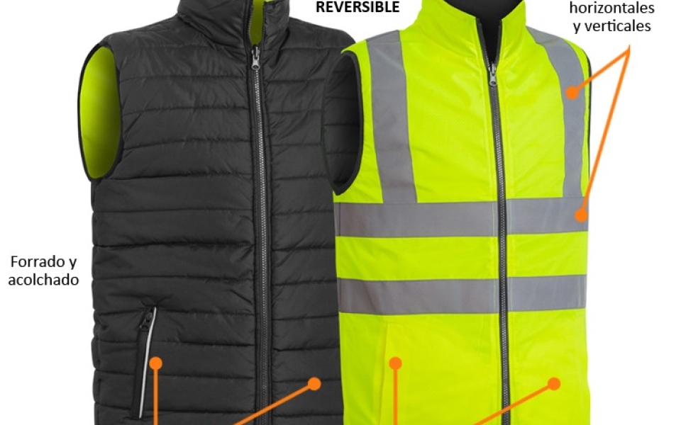 Práctico chaleco laboral reversible válido para diferentes usos. La clase 2 en alta visibilidad (EN20471) hace que el usuario sea visible de forma correcta en situaciones de riesgo, además de sentirse protegido del frío ya que este chaleco de trabajo ligero está también certificado en la norma de protección contra de frío EN14058.