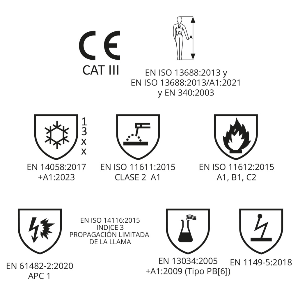 • EN 13034:2005+A1:2009 Tipo PB[6] EN 1149-5:2018