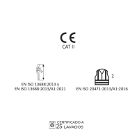 • EN ISO 20471:2013/A1:2016 Classe 2 (certificada em conjunto com as calças combinadas de alta visibilidade ref. PCAVB-1050-W)