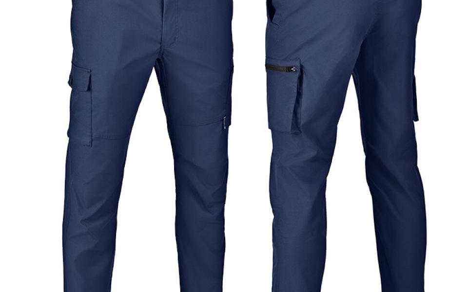 Tecido técnico de montanha adaptado ao estilo workwear, com bolsos funcionais e cintura elástica para melhor ajuste.